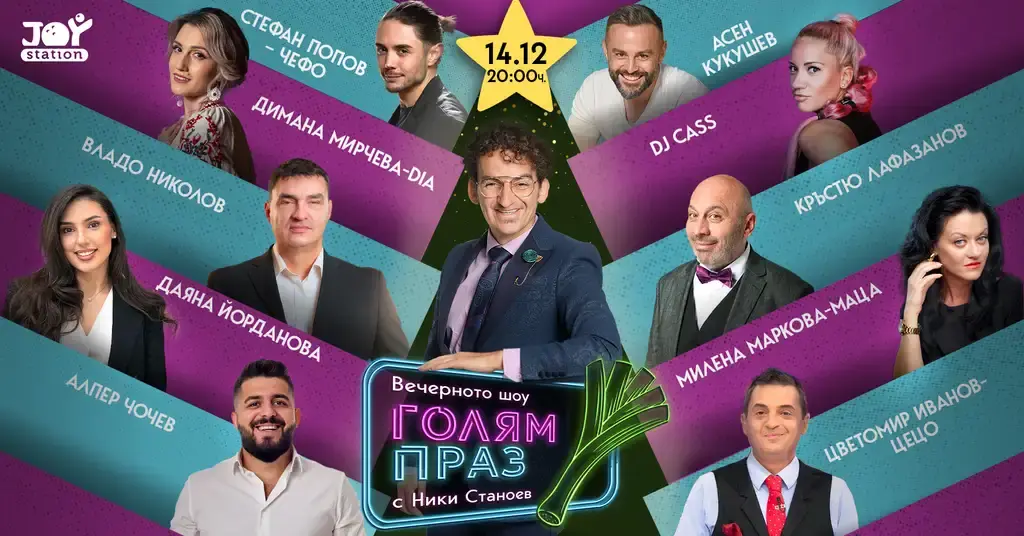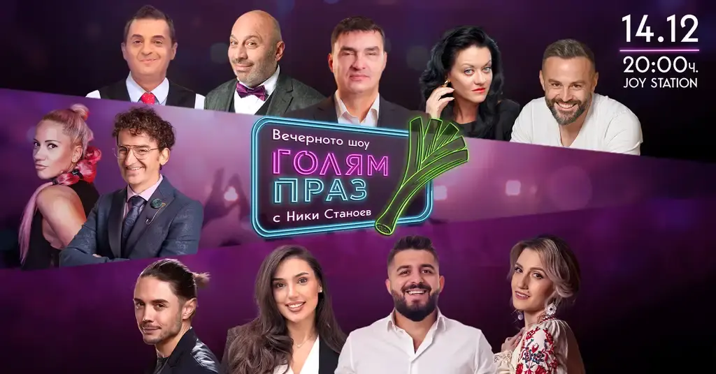 След като първото късно шоу на сцена у нас - „Голям праз“, вече привлече вниманието с идеята си за жива, нефилтрирана комедия и смела свобода на сцената, екипът разкрива и звездните имена, които ще влязат в самото сърце на премиерното издание на 14 декември от 20:00 ч. в Joy Station. Ако форматът обещаваше неочаквани срещи, провокации и неподправени реакции, гостите доказват, че обещанието ще бъде изпълнено с размах.