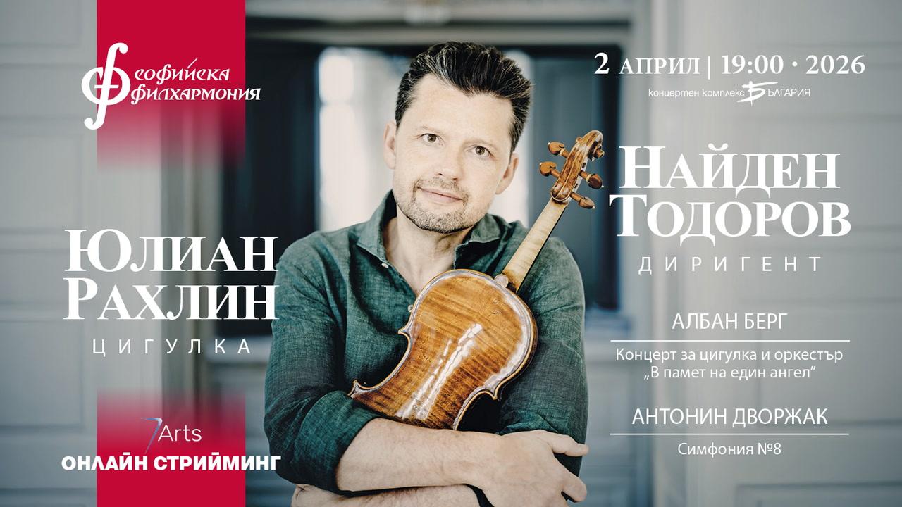 Какво да очаквате: На 2 април Софийската филхармония излиза на сцената на зала ,,България‘‘ в компанията на двама забележителни музиканти - цигуларят Юлиан Рахлин и маестро Найден Тодоров. Програмата обединява Менделсоновия концерт за цигулка – символ на романтична елегантност и виртуозност – и Симфония №8 на Дворжак, която носи ярка енергия и бохемски колорит. Софийската филхармония ще я представи по-късно същия месец и при своето гостуване в Берлинската филхармония.