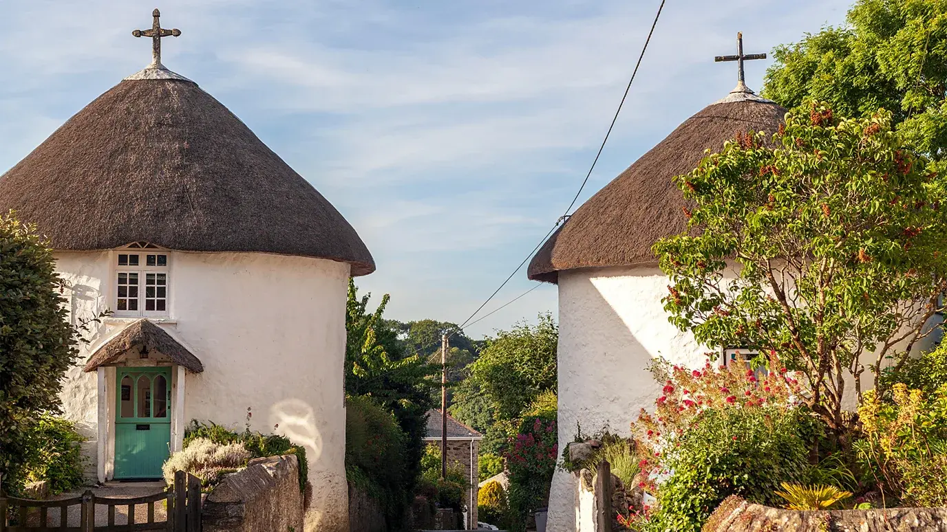 Многофункционалността на къщите с покриви от слама е такава, че те могат да приемат всякаква форма, включително и сгради с кръгли стени. Тук ви показваме пример от Вериан, Корнуол, особено живописно селце на полуостров Роузленд. Подобни къщи могат да бъдат намерени и в Уинтъртън-он-Си в Норфолк.