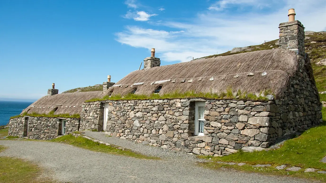 Много от къщите с покрив от слама в Хебридските острови са прости, едноетажни постройки, наречени „черни къщи“ или „taigh-dubh“ (на името им на гаелски). Терминът „черна къща” вероятно произлиза от факта, че първоначално тези къщички не са имали прозорци. Този тип къщички имат каменни стени с височина от 1 до 2 метра, за да издържат на силните атлантически бури. Дървеният материал тук е оскъден и се използва само за покривни греди. Покривите на сградите обикновено имат основа от торф, покрит с тръстика. Тези слоеве традиционно се отстраняват през юни и се използват като тор за покриване на местните култури.
