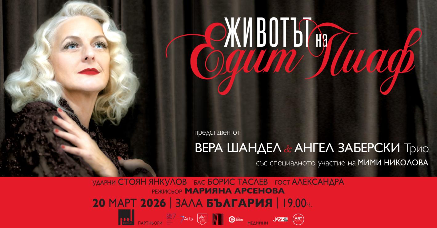 Има гласове, които продължават да звучат независимо от времето. Има истории, които се разказват отново и отново, защото носят пулса на една епоха. На 20 март 2026 г. от 19:00 ч. в Зала „България“ София сцената ще се превърне в пространство, където животът на Едит Пиаф ще бъде пресъздаден чрез музиката и присъствието на Вера Шандел & Ангел Заберски Трио.