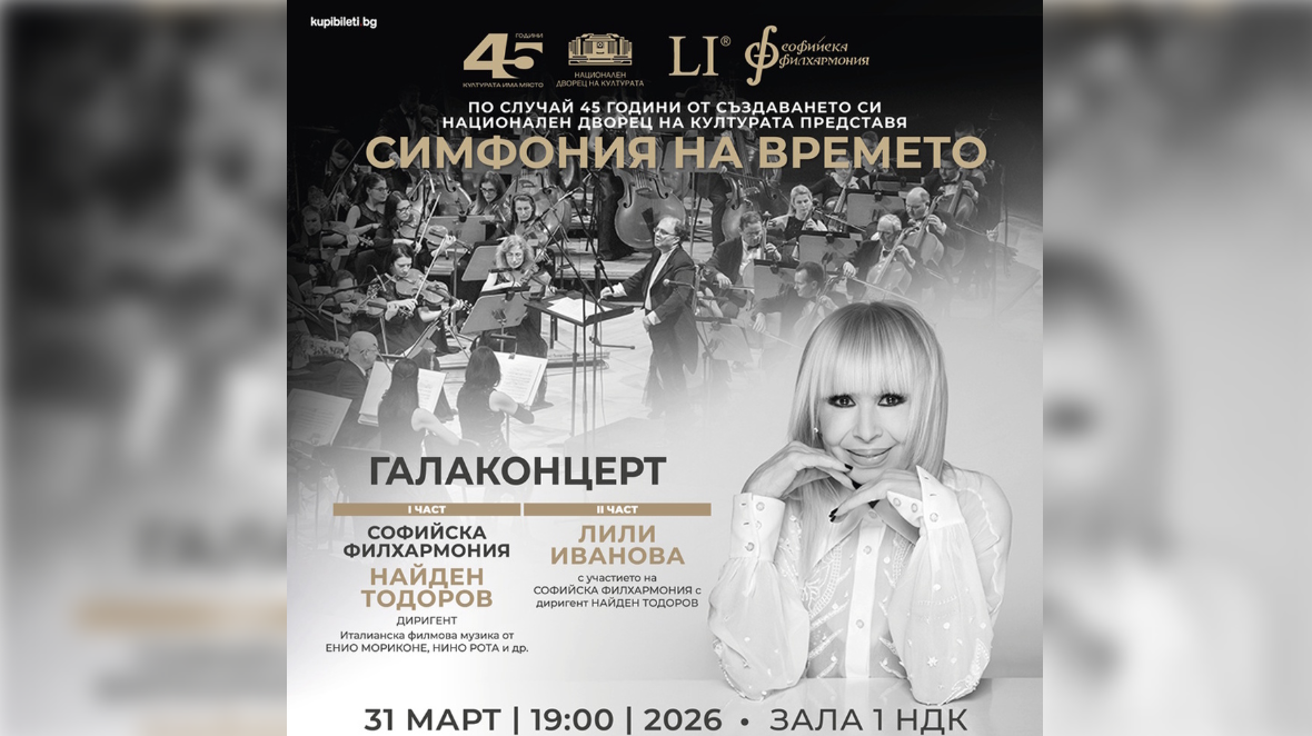 Празничен галаконцерт със специалното участие на Лили Иванова и Софийска филхармония, с диригент Найден Тодоров, ще отбележи 45-годишнината на Националния дворец на културата, съобщиха от БТА. Събитието е на 31 март, рождения ден на НДК.