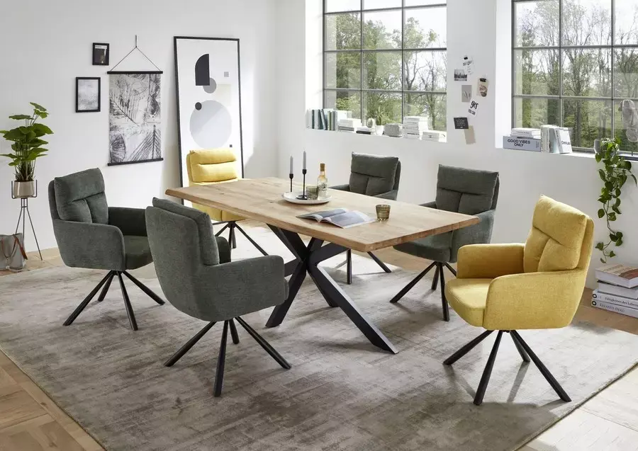 Кресло „ПЛАНЕТ“ съчетава стил и комфорт и е подходящо за модерни и лофт интериори. Здравите метални крака с матово покритие предотвратяват надрасквания. С ергономично седалище, което се върти на 180 градуса, и удобни подлакътници, креслото предлага допълнителен комфорт и функционалност. То може да бъде идеалното допълнение към вашите трапезария, хол, офис или гостна стая.