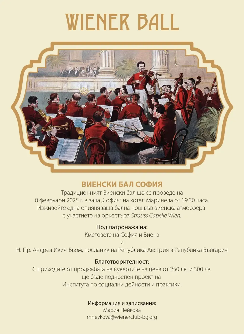 Традиционният Виенски бал в София ще се проведе на 8-ми февруари. Тази година той ще почете 200 години от рождението на композитора Йохан Щраус със специално изпълнение на автентичният оркестър Strauss Capelle Vienna. Това е изключително явление и привилегия, тъй като