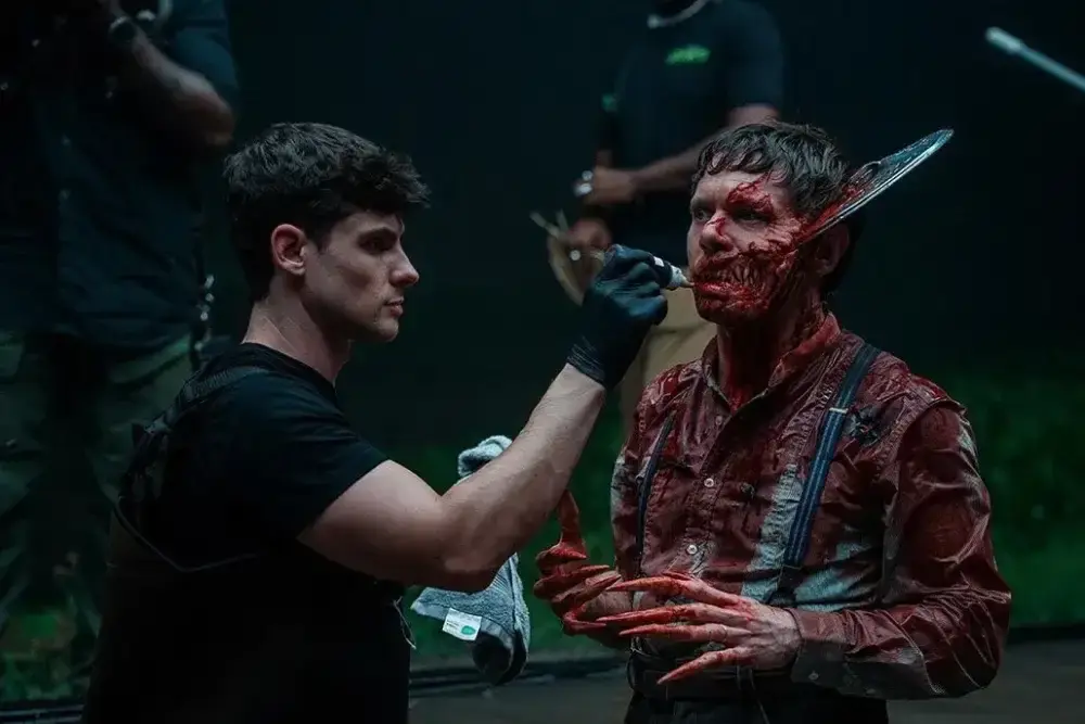 За да реализира тази сцена, той изработва пластина от фибростъкло, която се поставя на главата на Ремик с прикрепени към нея магнити, така че фалшив резонатор за китара да може да се закрепи към нея, пише Variety. „Имаме тази пластина на главата му. Тя е скрита от протези и перуки, така че изглежда като че ли е само главата му, но под нея има цяла структура. Има тръби, които изпомпват дим и кръв от нея“, обяснява Фонтейн.