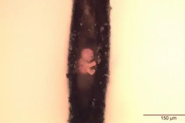 Майсторът на микроскулптурите Уилард Уиган създава скулптура на ембрион с дължина едва 78 микрона и височина 53 микрона и я поставя вътре в издълбан косъм. Той изработва микроскопичното произведение от влакно от килим.