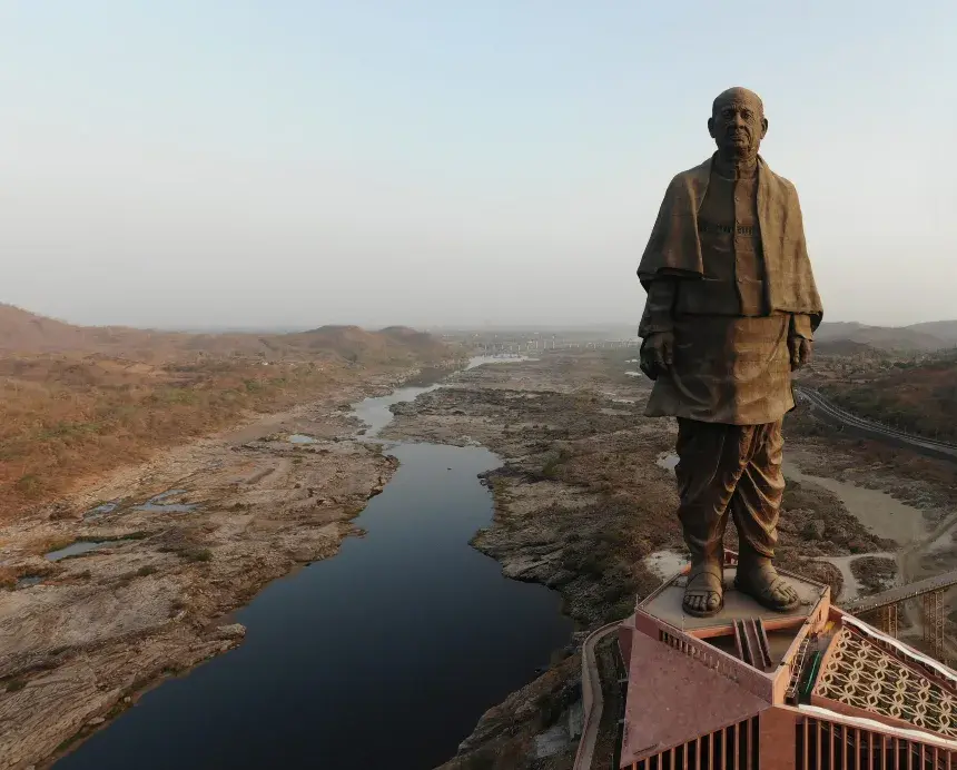 Индия издига най-високата статуя в света, достигаща 597 фута височина (близо 182 метра), в чест на Сардар Валабхай Пател, който е първият заместник-министър-председател на страната. Изграждането ѝ отнема четири години, струва 29,9 милиарда рупии и изисква 7 416 080 кубични фута цимент, 25 000 тона стомана и 1 700 тона бронз, пише Artnet.