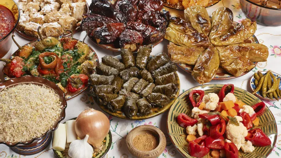 Сарми – от кисело зеле или лозови листа и пълнеж от ориз, понякога се пълнят и със сушени плодове или ядки.