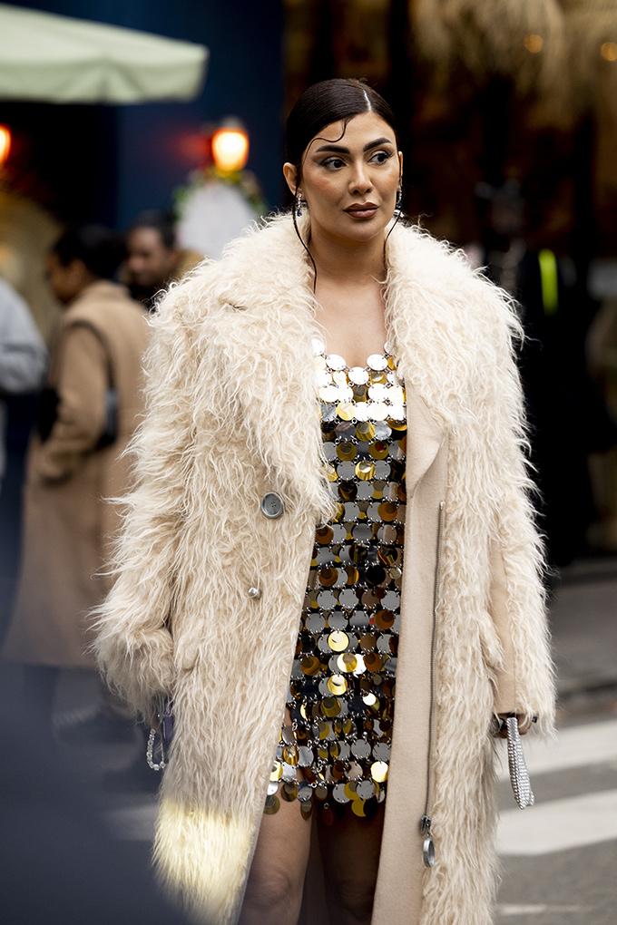 Пайетите и палтото с дълъг косъм са перфектната комбинация за празничния сезон. Те са луксозни, бляскави и напълно функционални. Тази визия напомня един от най-емблематичните тоалети на Кари Брадшоу в първия филм „Сексът и градът“, когато тя тича през мразовития Ню Йорк в новогодишната нощ, за да прекара вечерта с приятелката си Миранда. Ако изберете този тоалет, гарантирано няма да ви бъде студено през цялата вечер, а и със сигурност ще бъдете звездата на събитието.