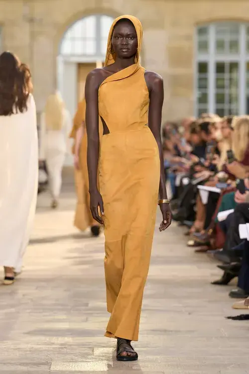 Louis Vuitton даде началото с колекция, вдъхновена от дома, в която основен акцент бяха нощници и ефирни комбинации. Прозрачни или сатенени, с дантелени детайли, тези домашни силуети превърнаха уюта в моден жест и издигнаха „изкуството да останеш у дома“ в естетическо изявление.