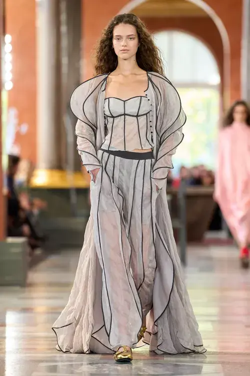 Разголените корсети и подчертани конструктивни линии придават неочаквана форма и доза характер на класическите женствени визии. При Magda Butrym корсетите едва се подават под елегантни ризи, докато Hodakova използва метални елементи, напомнящи на клетка – своеобразен модерен доспех. Силуетът става скелетът, който диктува визията.