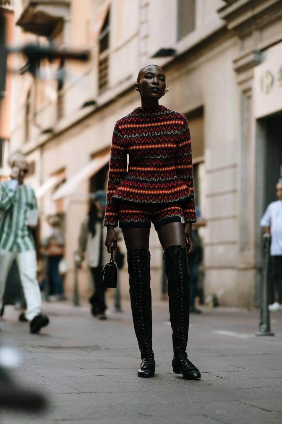 Плетеният комплект е като рокля, но с повече характер. Пола и жилетка или пуловер в един и същи десен изглеждат елегантно, а и се обличат за секунди в студена сутрин. Съчетава се най-добре с класически черни или кафяви ботуши до коляното.