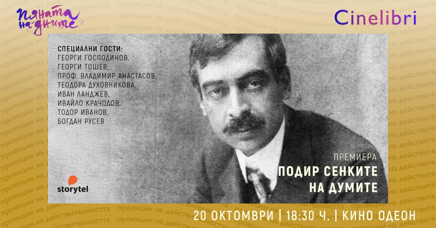 патоса му на революционер и родолюбец, психологическата дълбочина и екзистенциалната проблематичност на поетичните му текстове. В това проникновено и вълнуващо колективно изследване участие ще вземат проф. Владимир Анастасов, Теодора Духовникова, Георги Господинов, Георги Тошев, Иван Ланджев, Ивайло Крачолов и председателят на фондация „Яворов” Тодор Иванов. Тъй като билетите за събитието на 20 октомври вече са изчерпани, организаторите обявяват две допълнителни прожекции на филма в Casa Libri - на 27 октомври от 18:30 ч. и на 1 ноември от 19:30 ч.