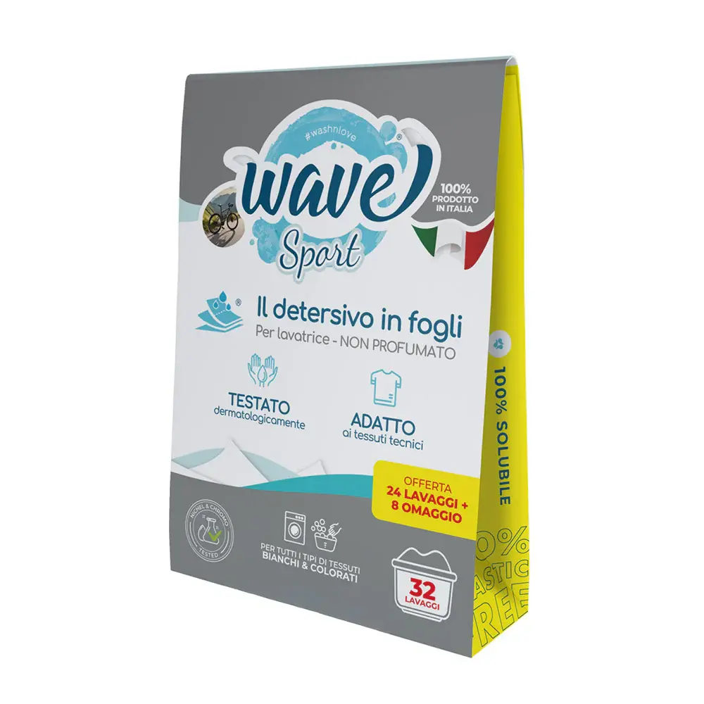 Те гарантират почистване в дълбочина и премахване на неприятните миризми. Най-хубавото е, че това не е за сметка на тъканите и цветовете. Изключително щадящи, лентите ще поддържат спортните ви екипи като чисто нови дори и след десетки пранета. Както останалите италиански продукти от марката Wave, така и Sport серията не оставя следи, благодарение на технологията си, която позволява пълното разтваряне на лентите както при високи, така и при ниски температури.
