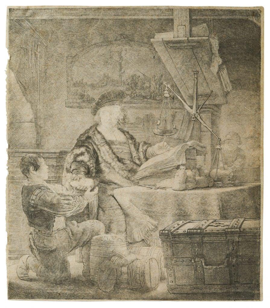 Произведение на Рембранд ще бъде продадено на 3 декември в английската аукционна къща Cheffins, където се очаква да достигне цена между 10 000 и 20 000 британски лири (13 100 и 26 200 долара).Миналата година Едуард Барлоу претърсва студиото на баща си - покойния театрален дизайнер и художник Алън Барлоу, в Норфолк, когато открива чекмедже, пълно с гравюри и произведения на изкуството. Сред тях е и такава с А5 размер, на която беше изобразен мъж в палто, който пише в счетоводна книга и подава торба със злато на чирак, коленичил до него. Стилът и облеклото от онова време подсказват, че това е гравюра на Рембранд. Барлоу не знае, че е намерил оригинална контрапроба на „Златомерът“ (1639), изобразяваща Ян Уйтенбогарт, главен събирач на данъци в Амстердам.