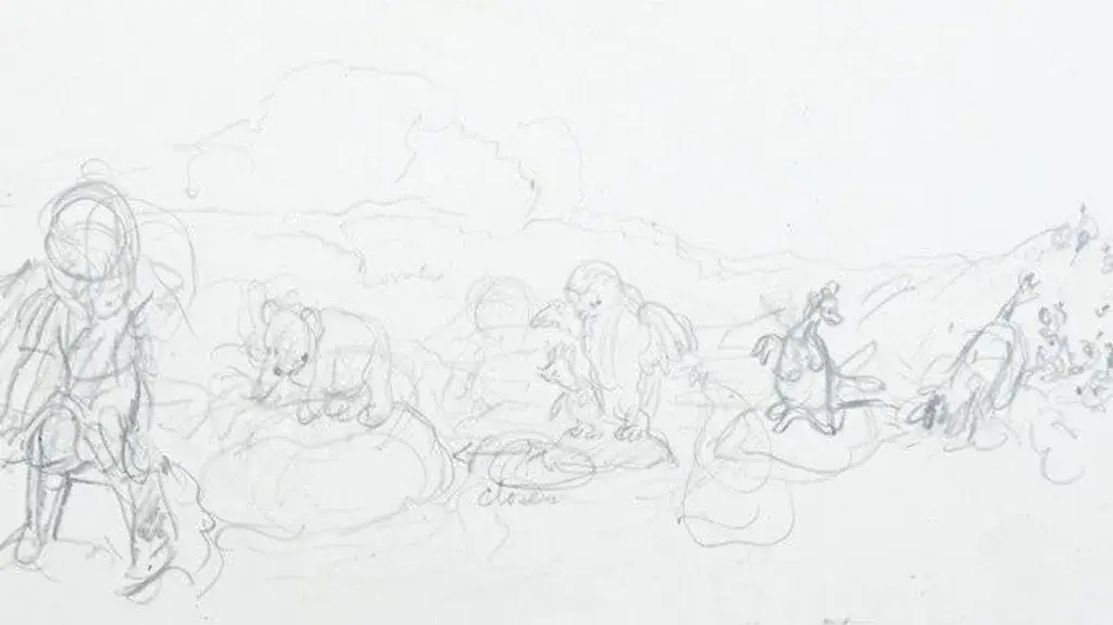 Деветте скици, предоставени от семейството на Шепърд, ще бъдат изложени до 27 април в галерията за редки книги на Питър Харингтън на Dover Street, Mayfair, Лондон, пише BBC.