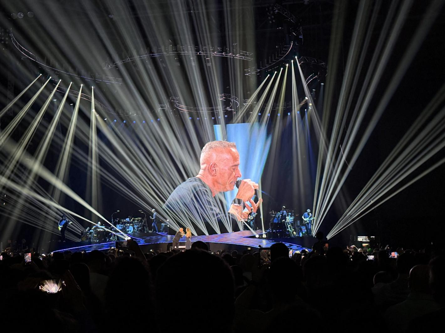„Като торнадо се носи по сцената“ – коментираха две жени зад мен, докато викаха с цяло гърло неговото име, очаквайки с нетърпение какво ни е подготвил за бис. И така той се появи с китара в ръка – за да вдигне цялата публика на крака с „Un angelo disteso al sole“, а веднага след това ни напомни, че „да пееш за любов никога не е достатъчно“ с една от най-емблематичните му песни – „Più bella cosa“.