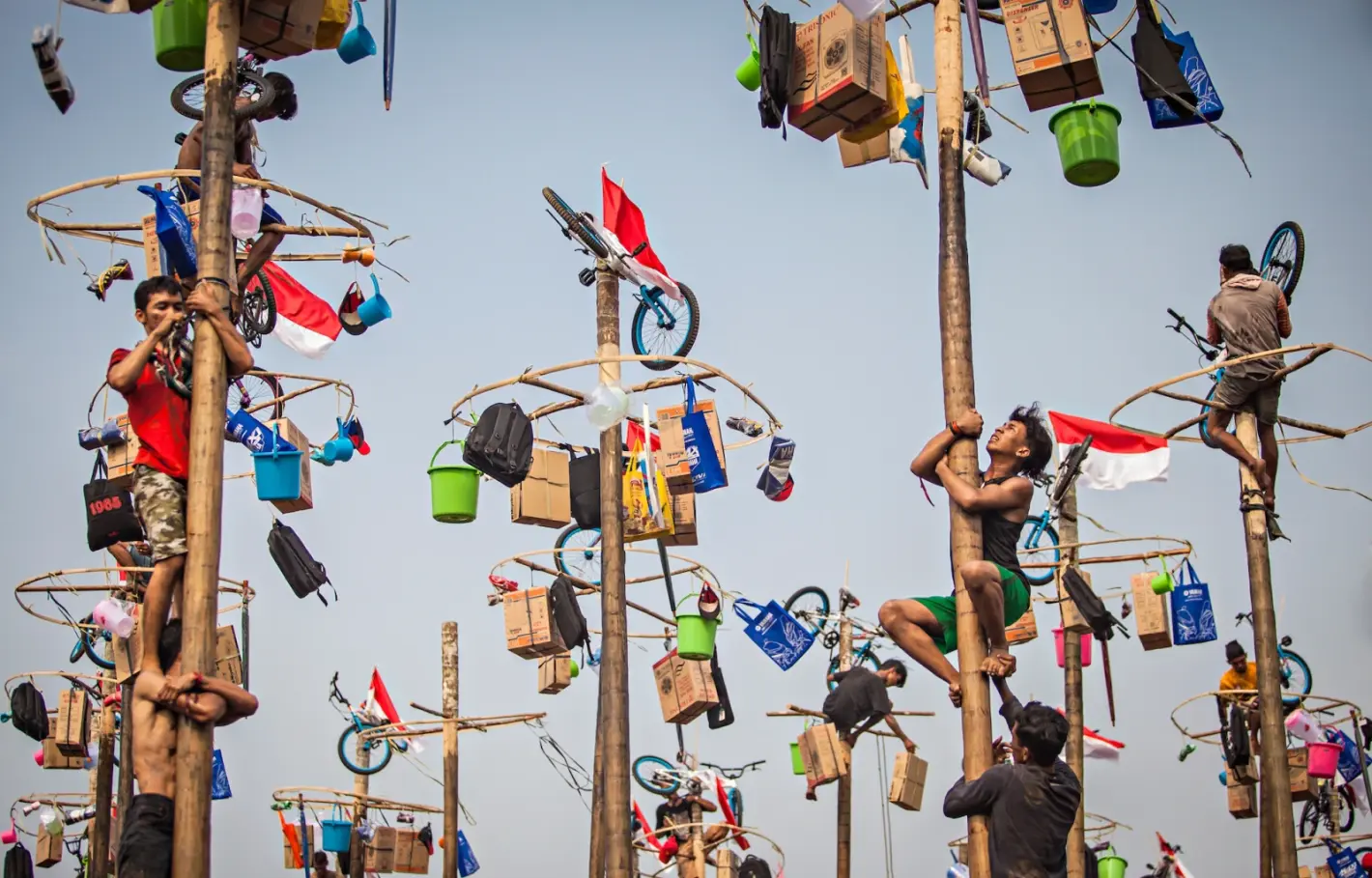 Четиригодишна война слага край на холандското колониално управление в Индонезия. Индонезийците организират игри и състезания, за да отпразнуват това събитие, като например състезания с чували и състезания по ядене. Една от най-популярните игри е „panjat pinang”, при която участниците се опитват да се изкачат по намазан с мазнина стълб, за да вземат наградите, поставени на върха му, които често включват велосипеди.