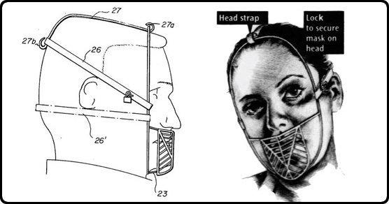 Звучи невероятно, но някой се е сетил да изработи устройство, което ще ви попречи да се храните. Въпросното предложение за патент е подадено през 1982 г. и представлява ,,маска за лице‘‘, която попречва на нейния притежател да преяжда. Устройството е замислено, така че да покрива устата, създавайки ,,бариера‘‘ между храна и всякакви напитки, докато бъде носено. За да бъде още по-ефективен този метод по пътя към отслабването, неговият изобретател е измислил ,,маската‘‘ да се прикрепя чрез дебели ленти върху главата, което прави свалянето ѝ, както и честото хранене почти невъзможни.