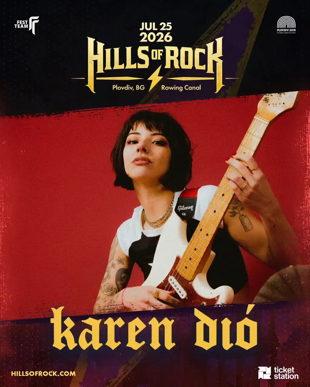 Атрактивната Karen Dio е сред най-смелите и обещаващи нови гласове на алтернативната сцена. С участия с групи като Limp Bizkit и Sum 41, тя бързо излиза на преден план с експлозивна енергия, сценично самочувствие и звук, който отговаря на нуждите на съвременното поколение фенове.