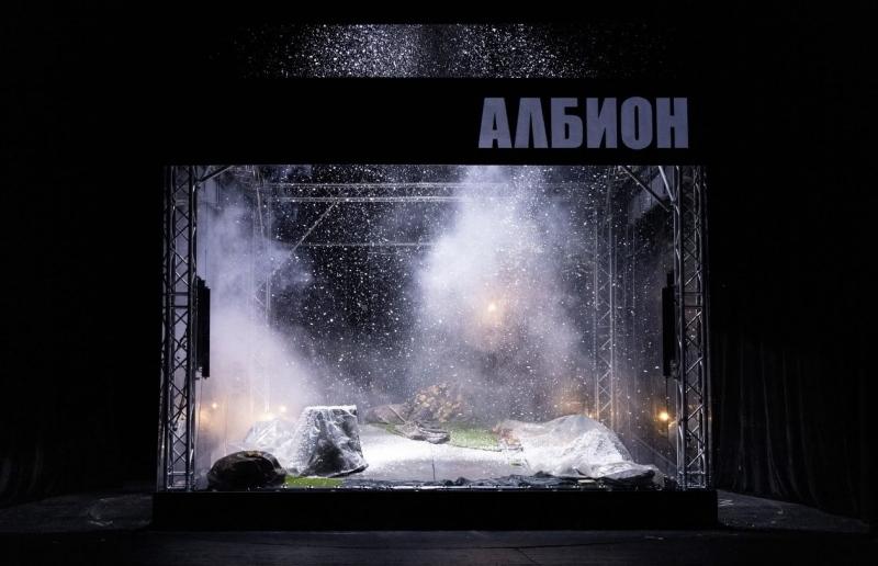„Албион” е спектакъл, в който режисьорът Зафир Раджаб не изневерява себе си и отново поставя героите си в кутия. И все пак