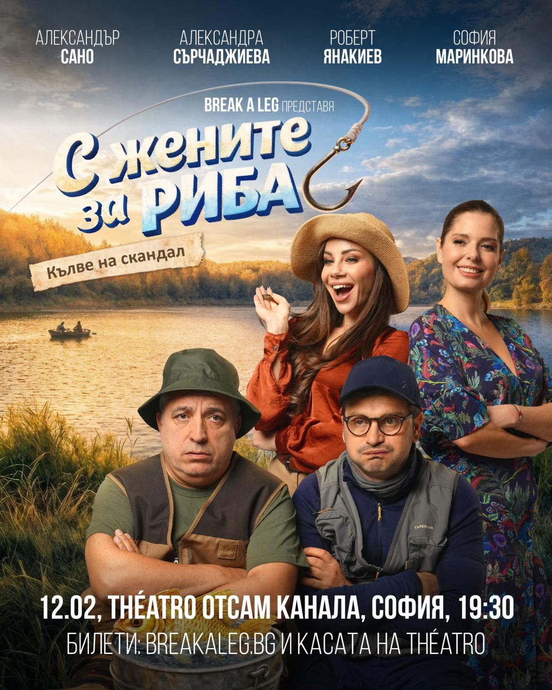 На 12 февруари в „Théatro Отсам канала“ ще се състои премиерата на „С жените за риба“ с участието на обичаните актьори Александър Сано, Александра Сърчаджиева, Роберт Янакиев и София Маринкова, съобщи театрална къща „Break A Leg“.