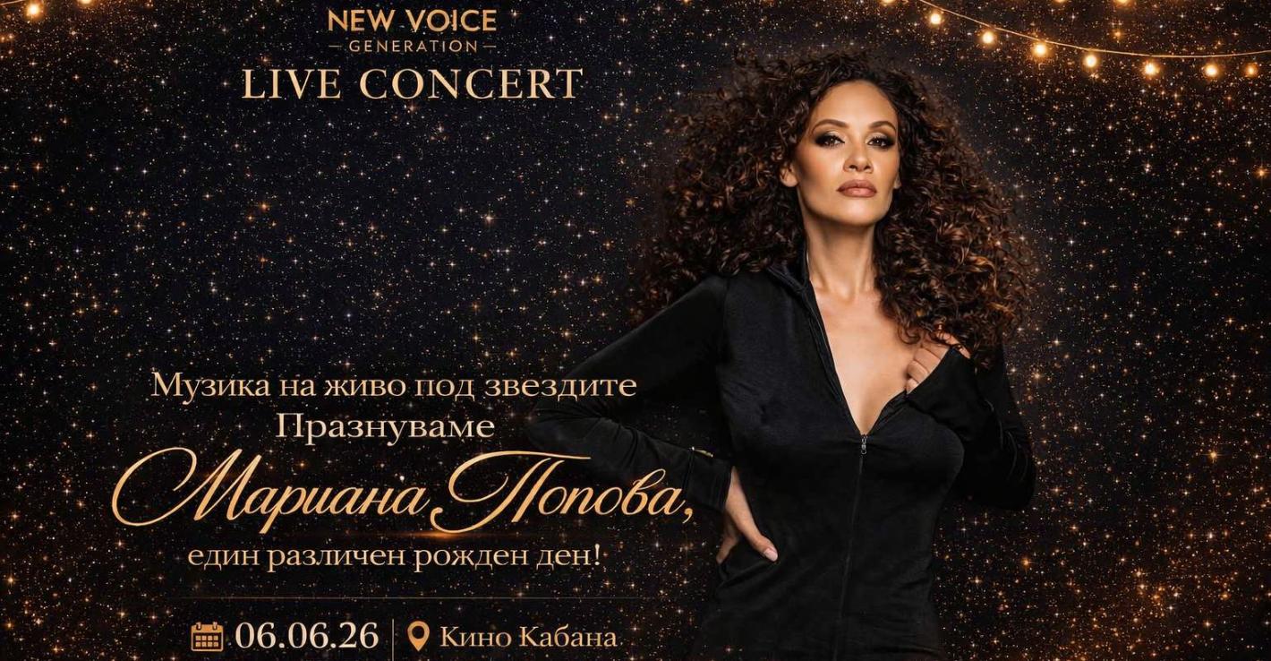 В началото на лятото София ще затупти в ритъма на поп и рок музиката за една вълшебна нощ под открито небе. На 6 юни, събота, Кино Кабана ще посрещне един от най-емоционалните гласове на България – Мариана Попова, която ще изнесе специален летен концерт на връх рождения си ден.
