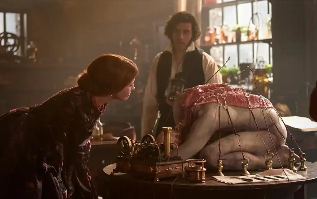 от локвите кръв пред дома на д-р Виктор Франкенщай, през привитата човешка фигура с оголени нерви на гръбнака, та чак до мистичната символика на тоалетите на лейди Елизабет – племенница на Игор (Миа Гот). „Черешката“ на този пир на сетивата обаче остава Съществото. Това превъплъщение коства на Джейкъб Елорди 10 часа на гримьорския стол и 42 протези. Тук е мястото да кажа, че не бих се изненадала, ако видим екипа, стоящ зад тази магия, в списъка с номинирани за награда „Оскар“ (а защо не победител, ако успее да се пребори с потенциалния си опонент „Злосторница“) в категорията за грим и прически.