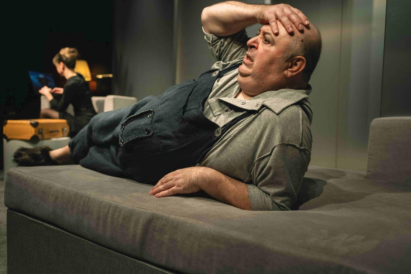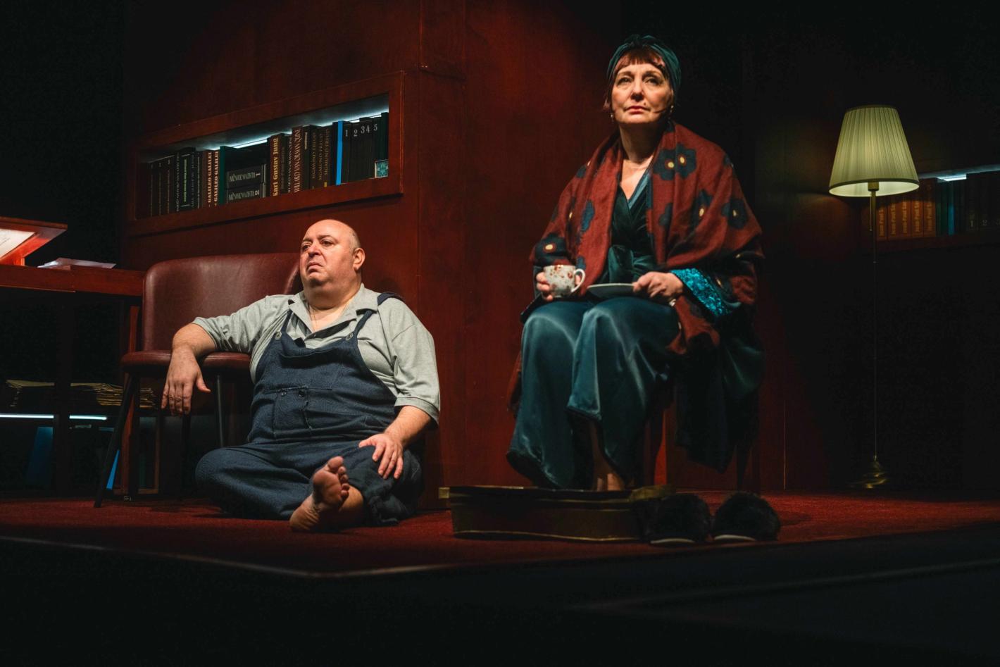 В главната роля е Любо Нейков, чието превъплъщение от изминалата вечер бе неговият дебют на сцената на най-стария театър в България. Той съумя да направи образа си смешен, само както той си знае, но и същевременно изключително човешки. Още в първите минути малката зала се изпълни със смях, благодарение на неговите жестове и мимики, които хем принадлежаха на самия актьор, хем и на неговия герой.