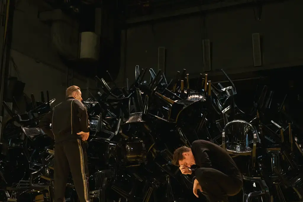 Освен това на сцената са сякаш безкрайни редове от столове, чиято подреденост постепенно започва да се нарушава, докато не се превърнат с огромна разхвърляна купчина – точно както привидният ред в семейството се превръща във всепоглъщаш хаос. Сценограф е Александър Денич, а костюмограф – Ана Савич Гецан.