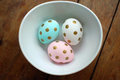 Украсата на точки е една от най-игривите и лесни за изпълнение техники, но този Великден ние ще им придадем един по-нов, модерен прочит. Основната стъпка, която трябва да повтаряте през цялото време е съвсем проста – върху вече боядисаното яйце се добавят цветни точки с маркер или боя. Също така може свободно да се развихрите с техния размер, точките могат да бъдат, както миниатюрни, така и по-големи. Този стил на боядисване е изключително подходящ за хора без много опит в рисуването, а най-хубавото е, че всяко яйце може да бъде направено по различен начин.