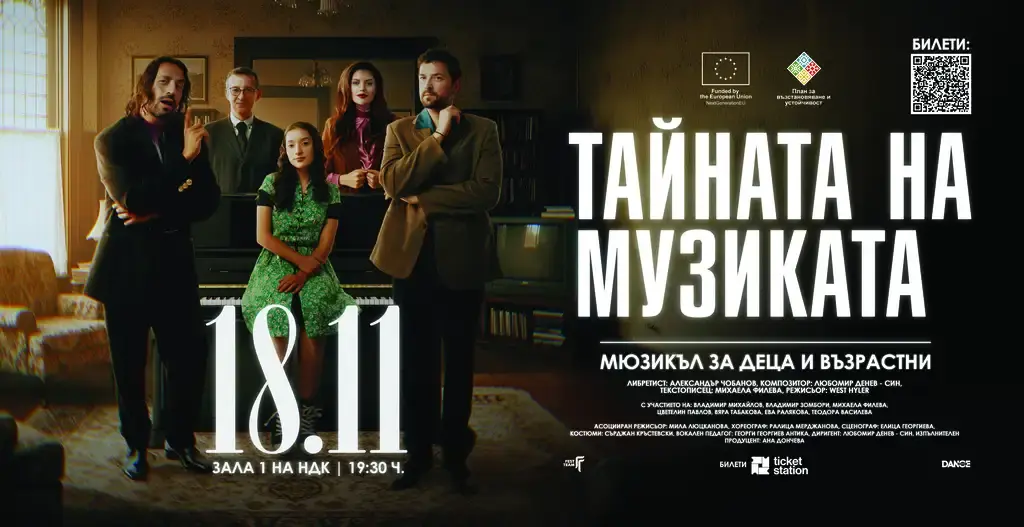 „Тайната на музиката“ е новият български мюзикъл, който ще оживее на 18 ноември в Зала 1 на НДК и ще върне зрителите в емоционалната атмосфера на 90-те – време на промяна, мечти и ново начало. Една от най-обичаните български изпълнителки - Михаела Филева, застава в центъра на голямата сцена в спектакъл с музика на живо, изпълнена от едни от най-добрите български музиканти. Зад проекта стоят още режисьорът Уест Хайлър, асоциираният режисьор Мила Люцканова, Александър Чобанов (оригинална идея и либрето) и Любомир Денев-син (музика, оркестрация, диригент). Билетите за „Тайната на музиката“ са в продажба в мрежата на Ticketstation и Eventim.