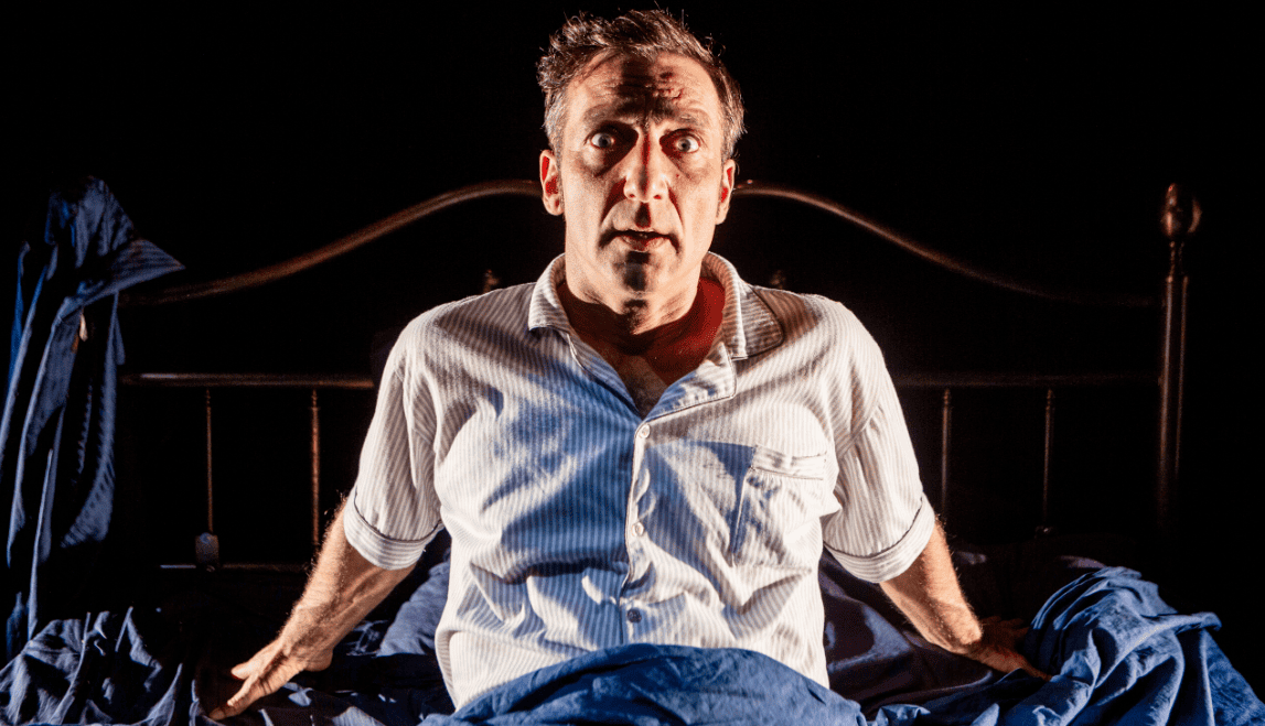 На сцената един мъж в пижама се бори с безсънна нощ. Това, което започва като позната битка с възглавницата, бързо прераства в нещо непредвидимо, предмети оживяват, пространството се изкривява и странни същества нахлуват в стаята. Границата между реалност и сън се размива напълно. Спектакълът е изграден като система от китайски кутии и всеки нов сън съдържа следващия, а илюзията се наслоява върху илюзия в привидно безкраен процес.