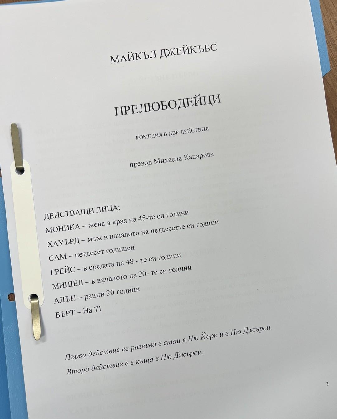 В Сатиричния театър „Алеко Константинов“ започнаха репетициите на постановката „Прелюбодейци“, съобщават от трупата. Премиерата е планирана за следващия театрален сезон на Голяма сцена.