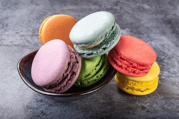 Макароните представляват шарен десерт, който напълно отразява любовта на французите към сладките изкушения. Те се приготвят от бадемово брашно, яйчени белтъци и захар, а крайната цел е да бъдат с лека текстура. Макароните могат да бъдат в различни цветове и вкусове - от ванилия до екзотичната матча например. В наши дни те не са просто десерт, а начин, чрез който френските пекари изразяват своята креативност.