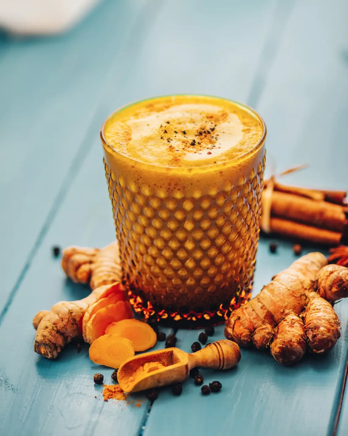 Извадете семената от ваниловата шушулка. Обелете куркумата и я нарежете на ситно. Отворете кокосовия орех, отделете белия му слой и изсипете водата в блендера. Добавете към тях семената от ванилия, черния пипер, куркумата, канелата и щипка сол. Миксирайте, докато получите гладка хомогенна смес, след което подсладете по ваш вкус.