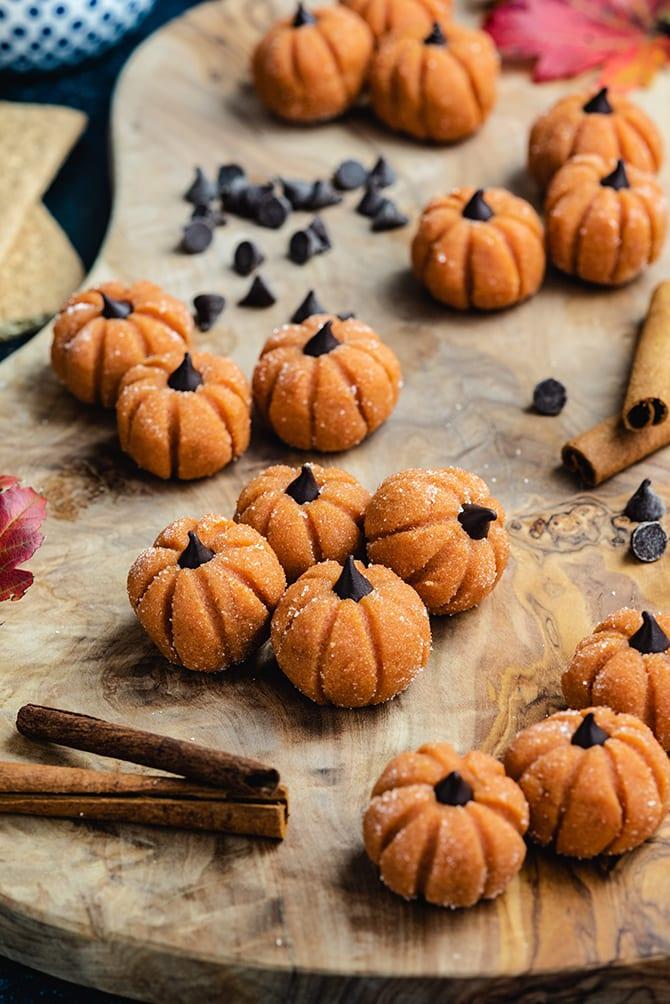 Малки, нежни и ухаещи на есен – тези тиквени трюфели съчетават кремообразен пълнеж от крема сирене, бискивти, тиквено пюре и бял шоколад, покрити с нежна захарна обвивка. С всяка хапка вкусът напомня домашен тиквен чийзкейк, но в мини вариант!