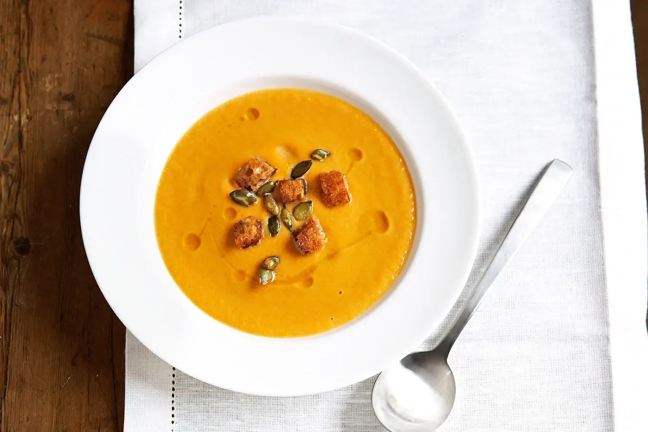 Изсипете 700 мл зеленчуков или пилешки бульон в тенджерата и подправете със сол и пипер, съветват от Good Food. Изчакайте да заври, след което оставете да къкри за 10 минути, докато тиквата омекне добре. Добавете готварската сметана и отново оставете да заври, след което пасирайте с ръчен блендер. За да получите по-кадифена консистенция, можете да прецедите супата през фино сито.